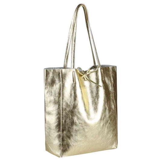 Modarno Shopper Bag a spalla in pelle Metallizzata con doppio manico e tasca interna in pelle Metallizzata