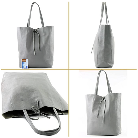 Modarno Shopper Bag a spalla in pelle con doppio manico, Shopper Large con tasca interna in pelle
