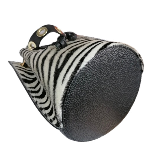 Modarno Borsetta a secchiello con dettagli circolari Cavallino 17x16x20cm