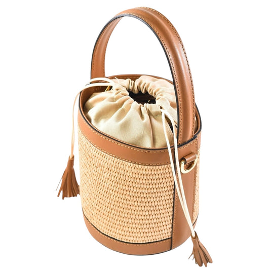 Modarno Borsa Secchiello in Vera Pelle spazzolata e rafia 18x13x16 cm