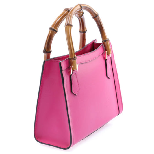 Modarno Borsa in pelle con manico in bambù, Borsa a mano Made in Italy, Borsa a tracolla, Borsa per tutti i giorni
