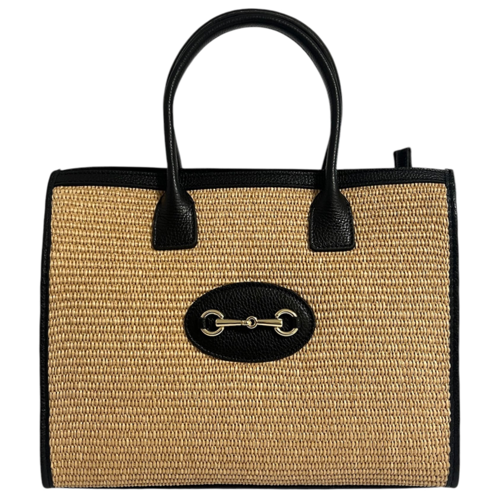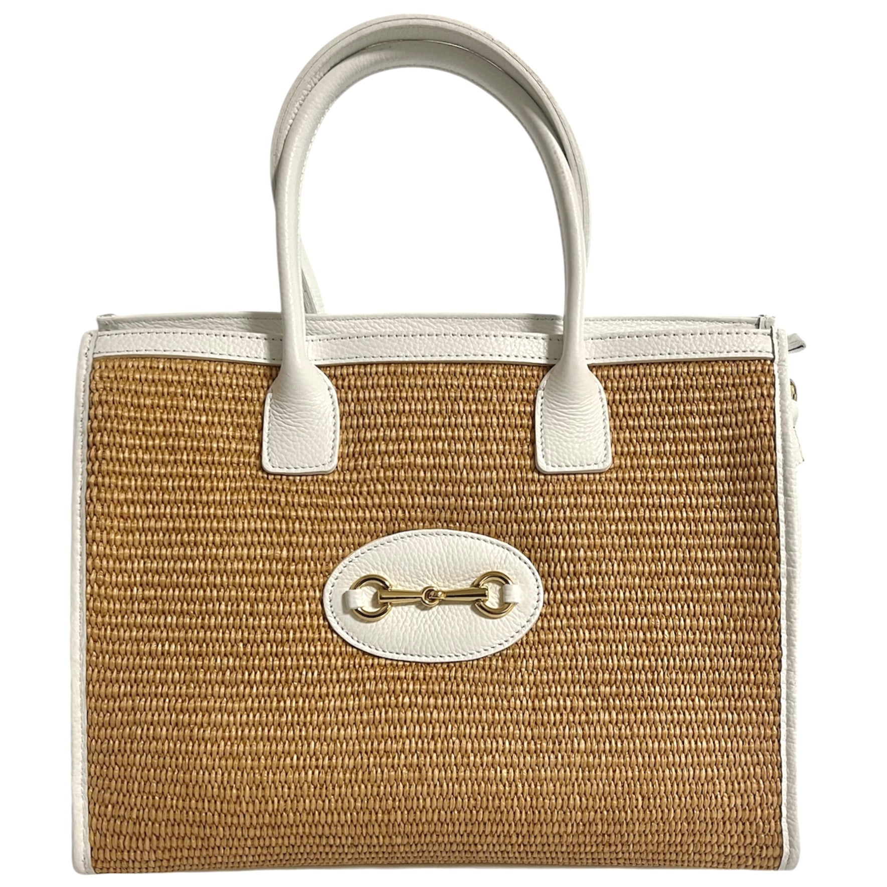 Modarno Borsa Shopper con tracolla in vera pelle e rafia Made in Italy 27x12x22 cm