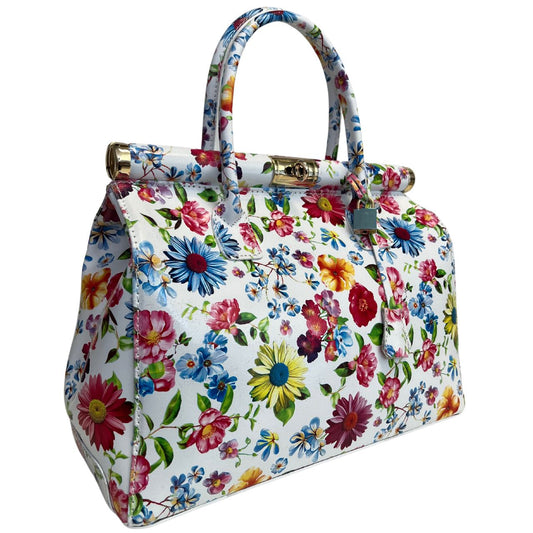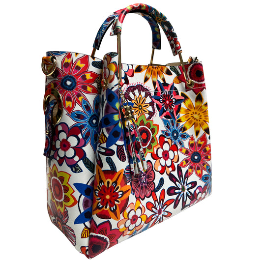 Modarno Handbag Borsa Donna a Mano Pelle con Tracolla Bauletto 35x28x16 cm (Fantasia Fiore)