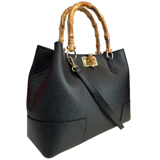 Modarno Borsa Donna in Vera Pelle con manico in vero bambù/Elegante e Minimal/Borsa di lusso Made in Italy