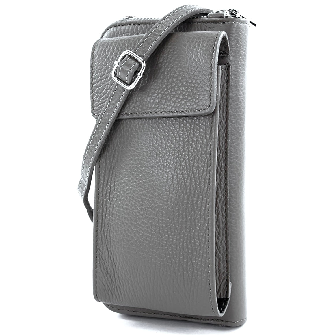Borsa a tracolla per cellulare a portafoglio realizzata in vera pelle. Tasca porta cellulare sul davanti con chiusura magnetica, adatta per cellulari fino a 6,7 pollici (lunghezza del cellulare 16,5 cm.). Il portafoglio ha uno scomparto principale con cerniera. All'interno: - 1 scomparto con cerniera per monete - 2 scomparti per contanti, carte, biglietti, passaporto o altri piccoli oggetti; 8 slot per carte di credito. tracolla removibile e regolabile regolabile da 60 - 115 cm. Un compagno perfetto per la vita di tutti i giorni. DIMENSIONI: L'intera dimensione: 20 x 11 x 5 cm (L x P x A). Dimensioni della borsa. 20 cm x 11 cm x 5 cm. La tasca frontale per cellulare ha dimensioni di 17 x 9,5 x 2,5 cm ed è adatta per telefoni cellulari da 6,7 pollici (16,5 cm). Non elencheremo tutte le marche e le serie di telefoni che si adatteranno al suo interno. Per vedere se il tuo cellulare si adatta, basta misurare il tuo cellulare. Peso: 290 g Materiali: pelle di vacchetta robusta e resistente. Parti metalliche di alta qualità. Fatto a mano in Italia. Tutte le altre borse colorate hanno parti metalliche color argento.