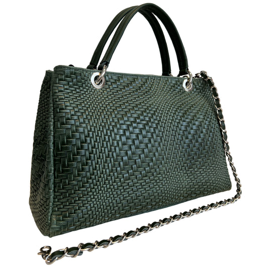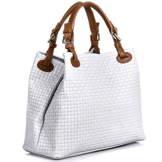 Modarno Borsa a Mano Stampa Intrecciata da Donna con Tracolla in vera pelle made in Italy - 33x17x29 Cm