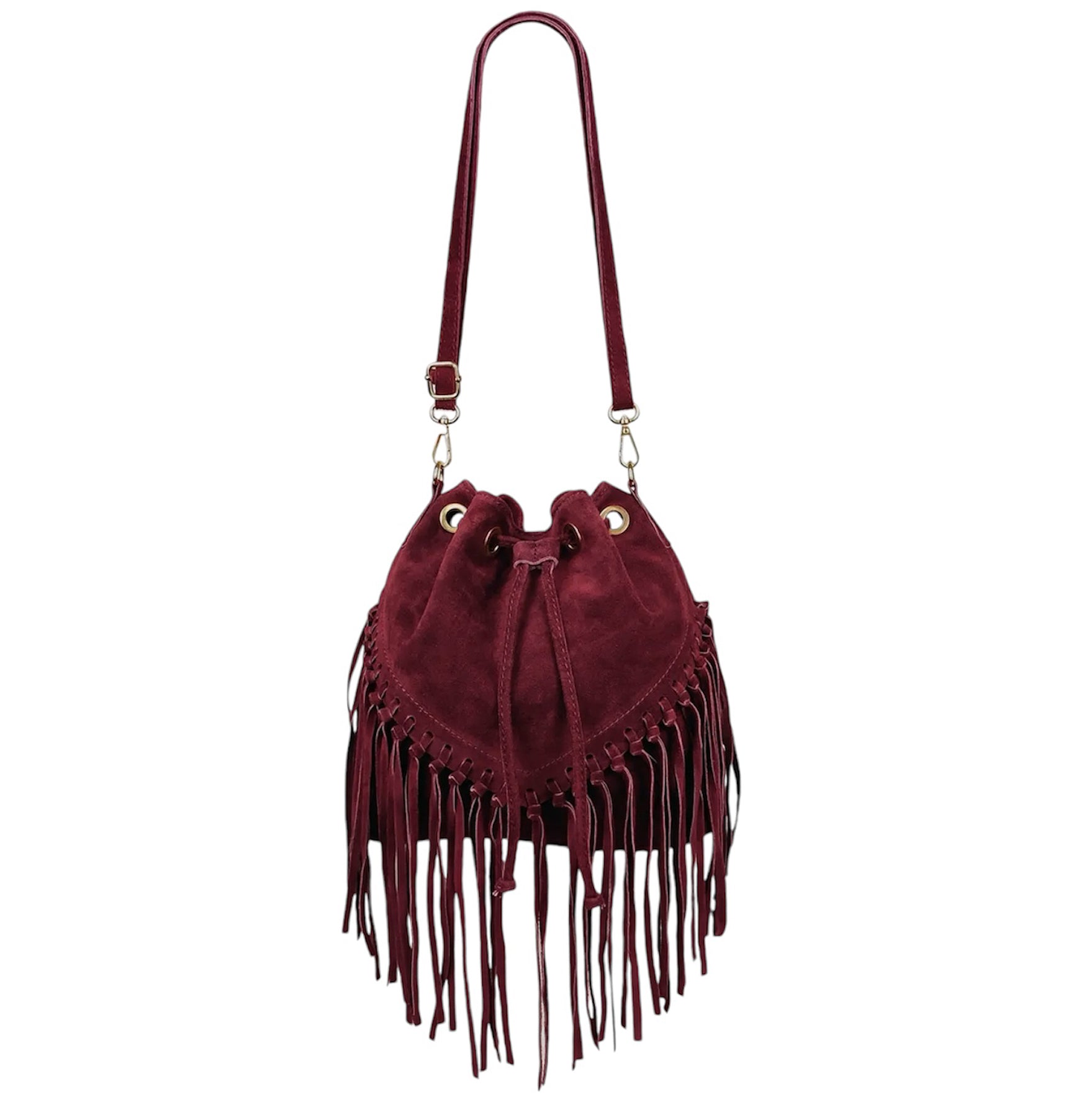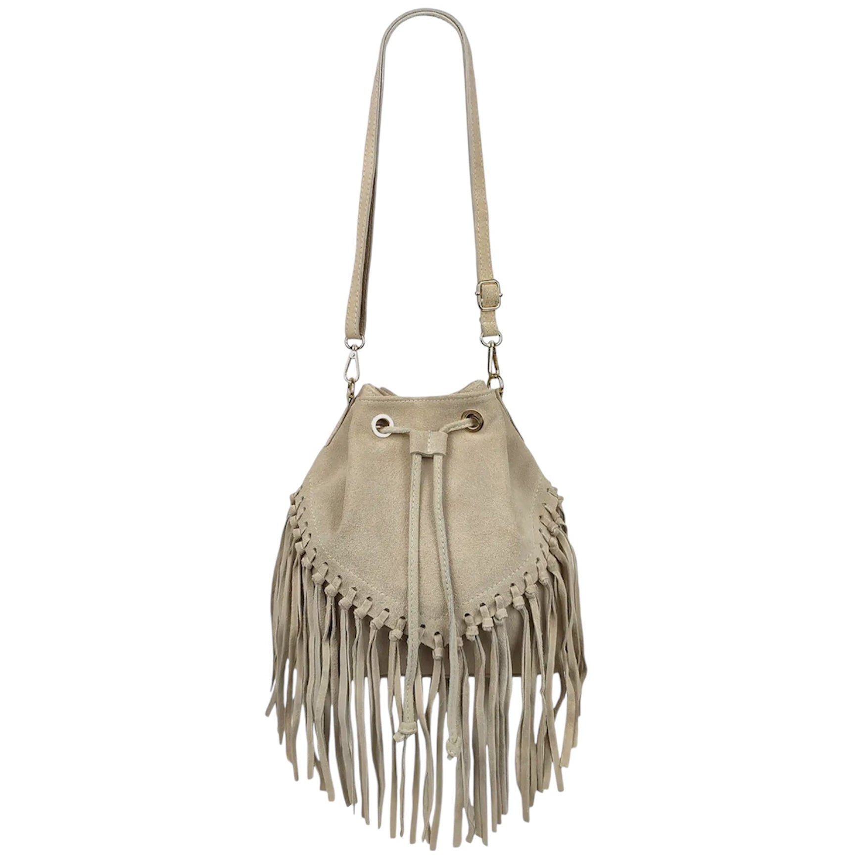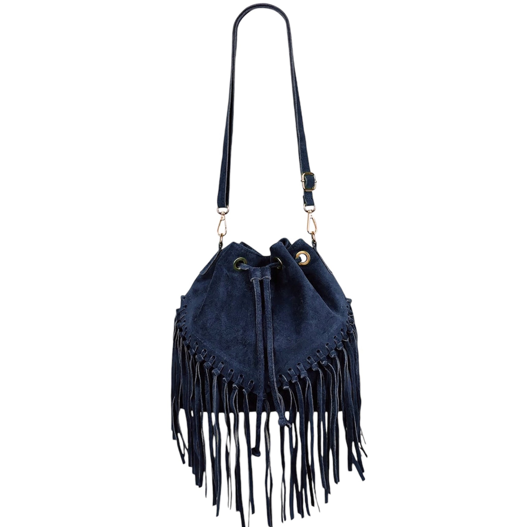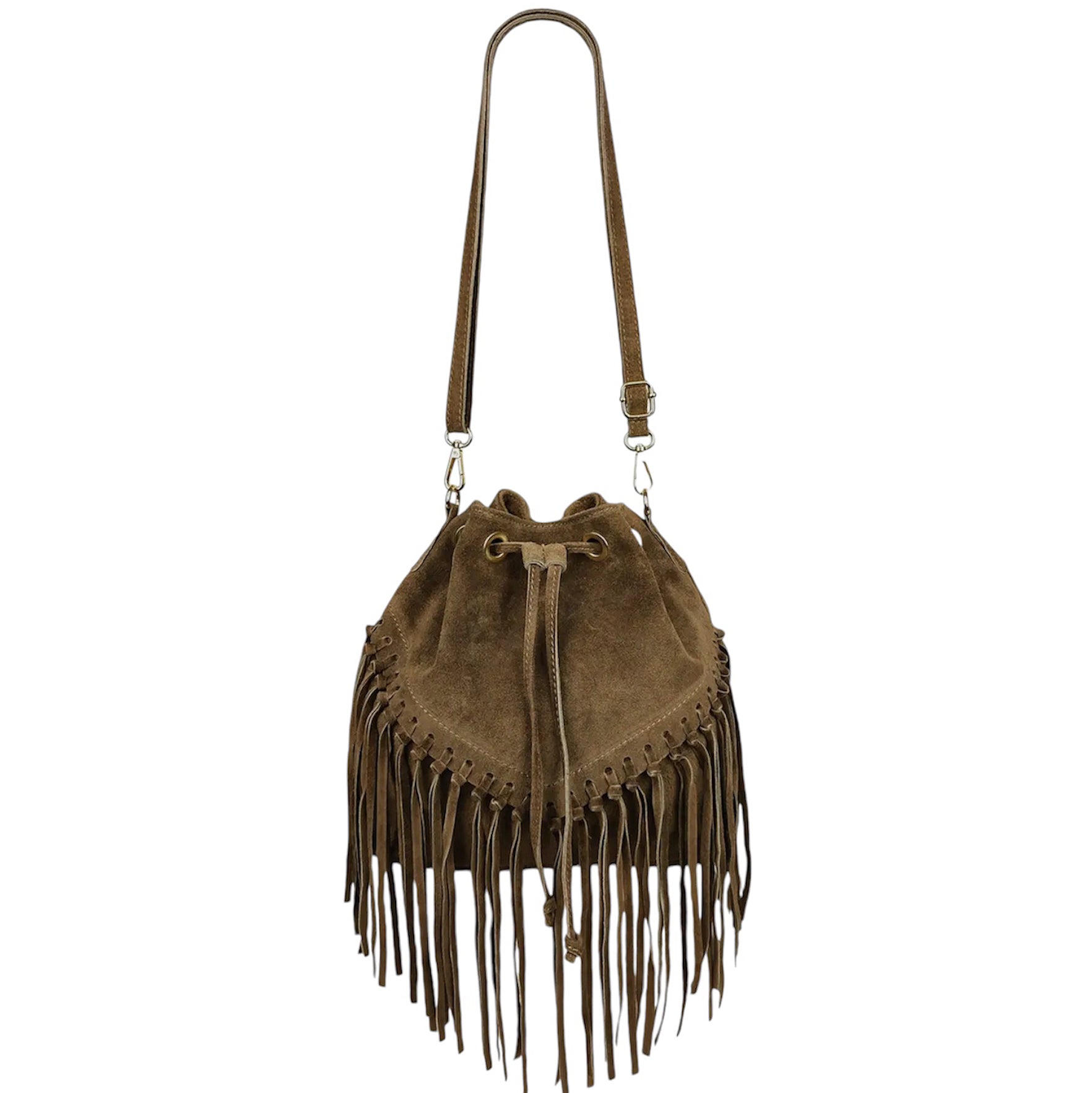 Borsa in vera pelle Scamosciata con frangie adatta per tutte le necessità.