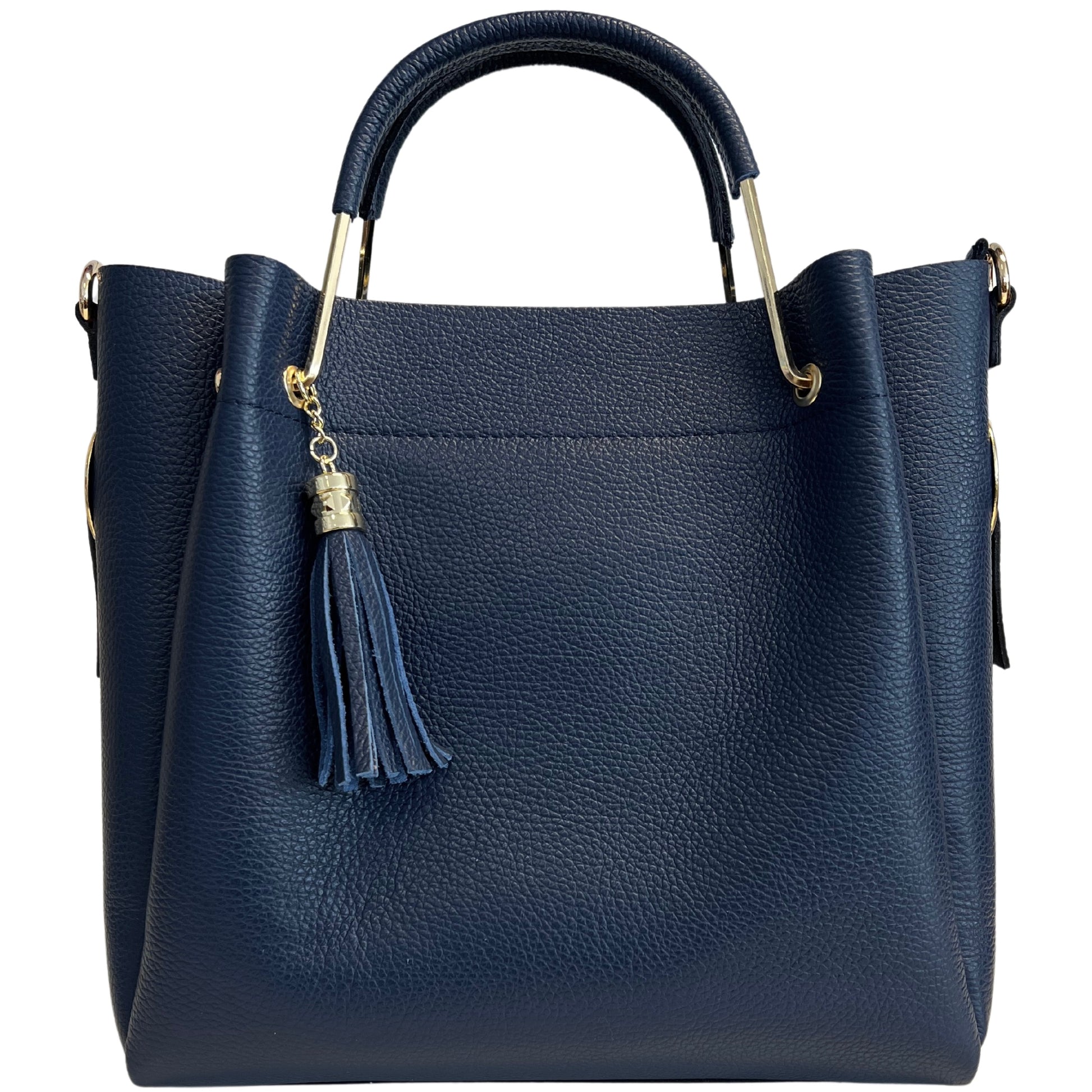 Borsa in pelle rigida capiente e versatile adatta a tutte le occasioni; la borsa ha due vani interni separati da una pochette staccabile e un taschino con cerniera per il telefono.